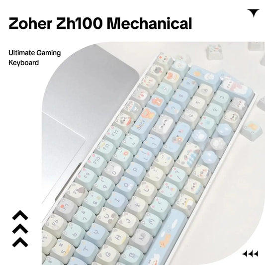 The Zoher ZH100 Mechanical Keyboard Features a 2.4G Three-Mode Connection, RGB Backlighting, a Custom Gaming Keyboard, and a Numeric Keypad. It'S Suitable for Office Work, Has a Cute Design, and Is Ideal for PC Gamers.